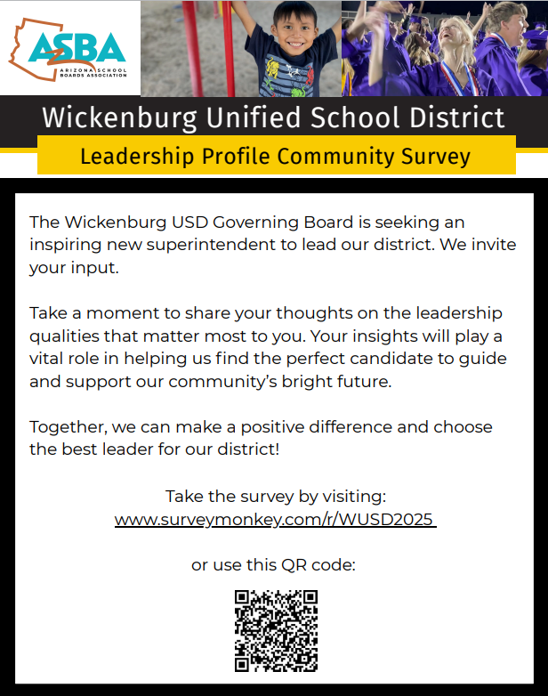 Thank you for choosing Wickenburg Unified School District for your child’s education. Whether you are a returning family or new to our community, we are excited to welcome you and look forward to partnering with you in the year ahead.